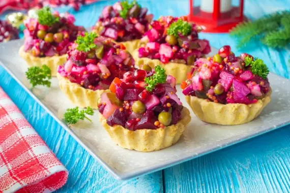 Свекла, Картофель, Морковь, Огурцы соленые, Лук красный, Горошек зеленый, Петрушка, Масло подсолнечное, Соль