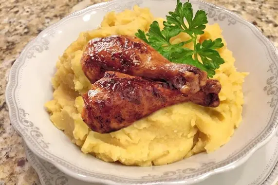 Картофель отварной с куриной голенью, Салат "Витаминый", Компот Яблочный, Булочка-хлеб белая