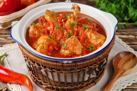 Лук репчатый, Перец болгарский, Помидоры, Чеснок, Куриные крылышки, Томатная паста, Кинза, Базилик
