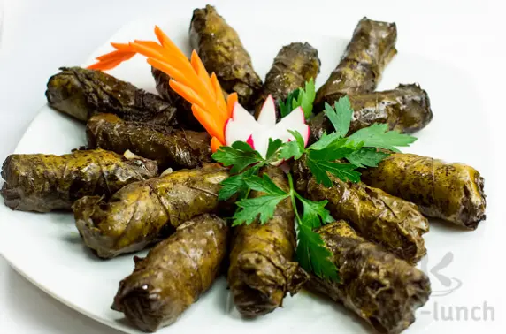 Виноградные листья, Фарш свино-говяжий, Морковь, Масло сливочное