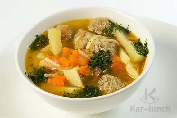 Фрикадельки, Картофель, Лук репчатый, Морковь, Лапша домашняя, Петрушка
