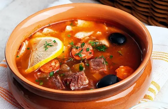 Масло топленое, Лук репчатый, Морковь, Огурцы соленые, Колбаса докторская, Колбаса копченая, Маслины, Оливки, Зелень, Картофель