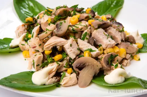 Куриное филе, Кукуруза, Шампиньоны, Майонез МЖК, Петрушка