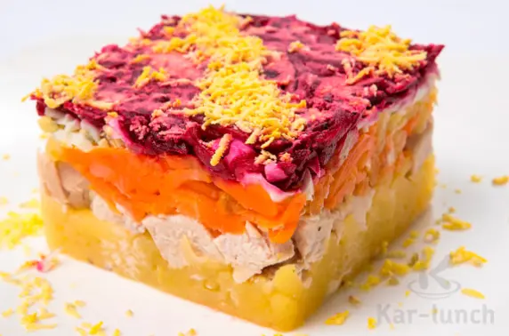 Картофель, Соль, Перец черный молотый, Куриное филе, Морковь, Свекла, Яйца куриные, Майонез МЖК