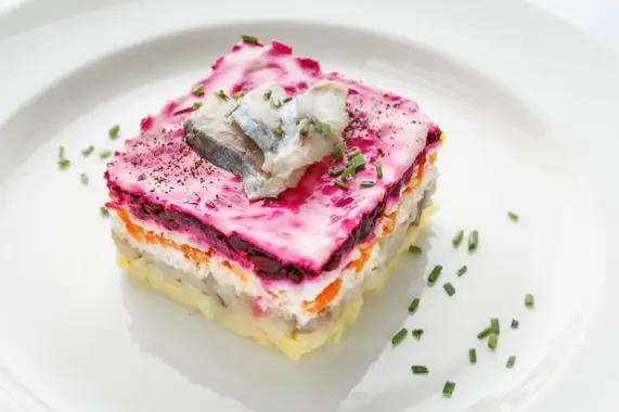 Картофель, Селедка, Морковь, Свекла, Яйца куриные, Соль, Перец черный молотый, Майонез МЖК