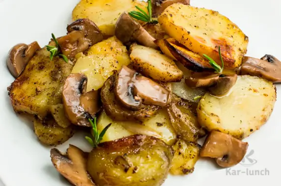 Картофель, Соль, Масло подсолнечное, Лук репчатый, Шампиньоны, Кинза