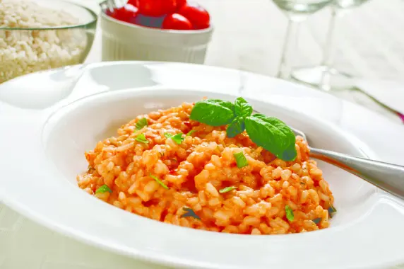 Рис длиный ( Шахзаде), Куриное филе, Шампиньоны, Масло сливочное, Сыр Пармезан, Чеснок, Лук репчатый